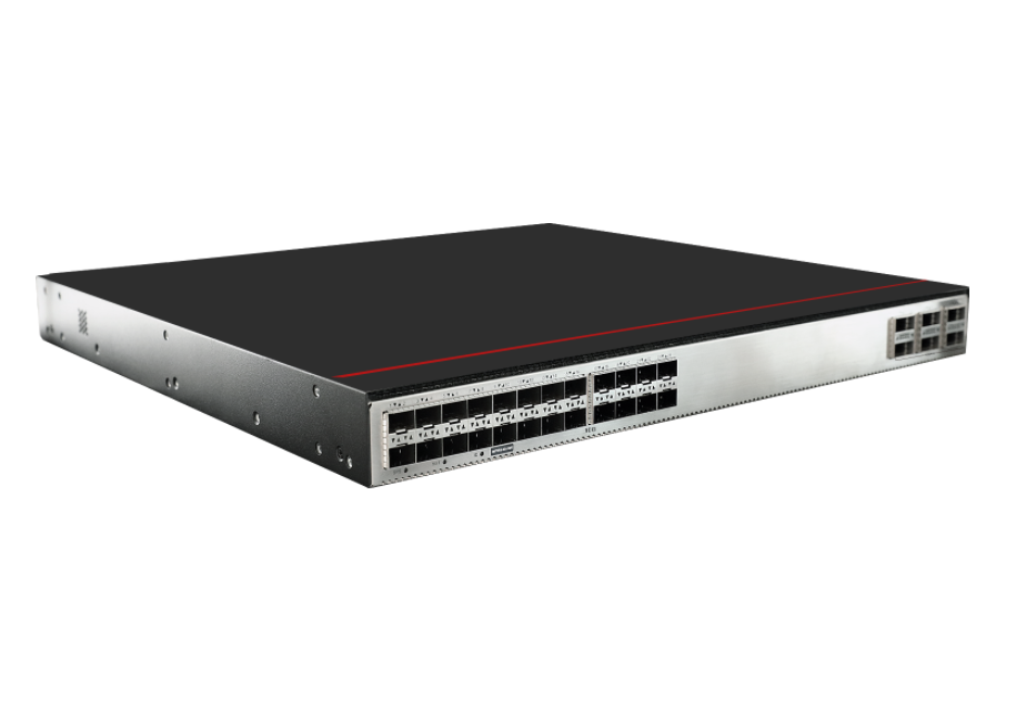 ⚫ 该系列交换机拥有业内同档次设备领先的万兆端口密度、交换容量,单台设备可以最多支持 48 个全线速转发的万兆端口, 支持高达 6 个 100GE QSFP28 端口,满足极速传输需求。